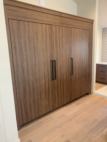 do not change the cabinets in any way preserve the exact cabinet colors materials finishes dimensions door and drawer styles hardware spacing alignment and all geometry exactly as shown do not alter the countertop shape backsplash appliances flooring lighting fixtures or wall structure only remove the construction materials clutter and mess from the scene clean the room and make it look finished and staged add a few simple tasteful home accessories appropriate for the style of the space but do not add or remove any furniture windows or architectural elements maintain the original lighting direction and realism enhance clarity and polish the photo while keeping the cabinetry and room design completely unchanged do not alter the lighting to keep the cabinet colors as they are in the image add a simple view out the window add flooring stage the countertop for a minimalistic kitchen
