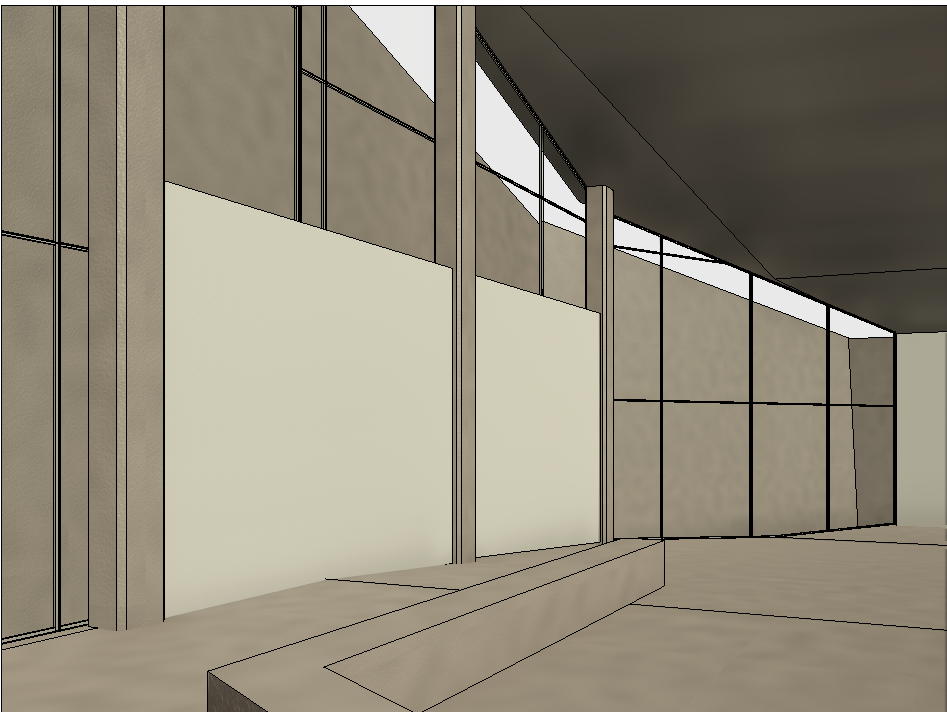 interior shot a beautifully rendered architectural interior perspective shoot of a contemporary building with moss covered concrete walls the fa ade is softened by lush greenery and climbing vegetation with large glazed openings that reflect the landscape the composition highlights the harmony between built form and nature with careful detailing balanced proportions and a natural color palette of greens greys and earthy tones atmospheric lighting enhances texture and depth