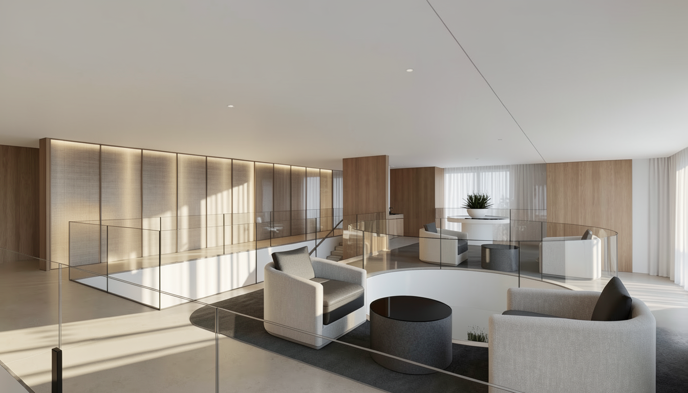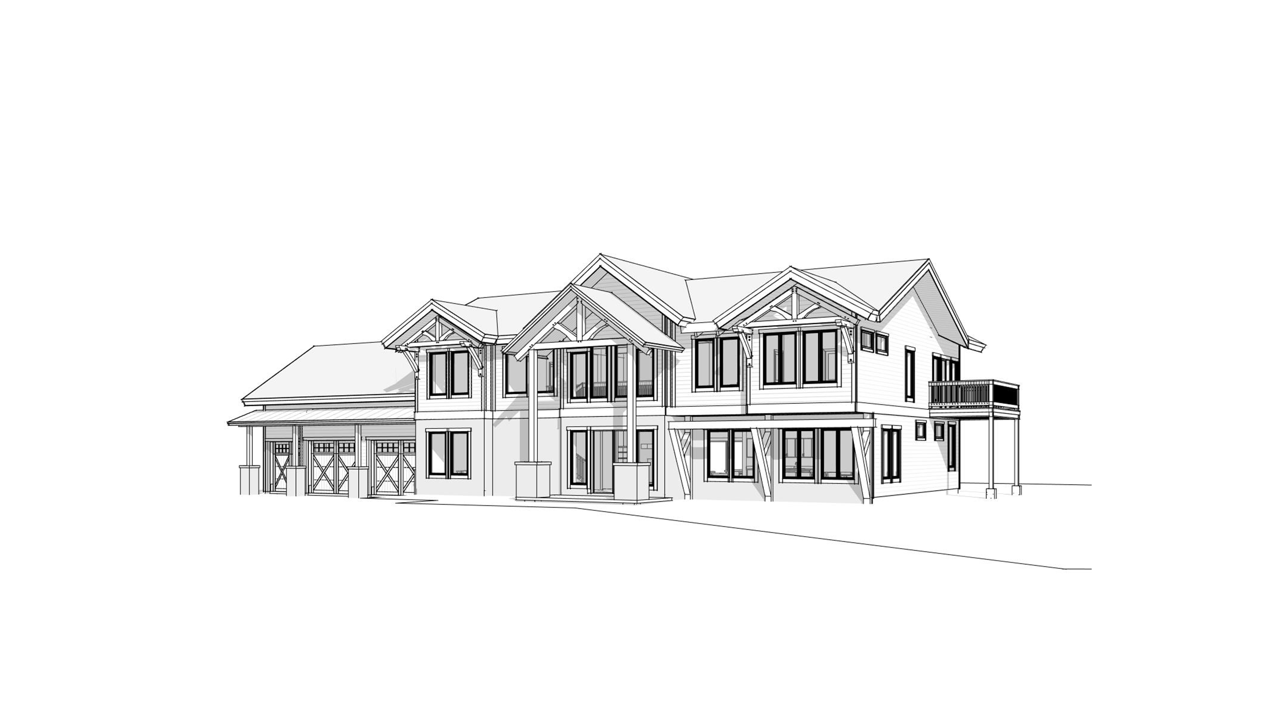 clean modern timber architectural exterior rendered in cinematic bright mid day lighting with vibrant blue skies and fluffy white clouds mountain modern with heavy timber architectural style select grade horizontal cedar siding beautifully lush green manicured landscape around structure with hedges and gardens black standing seam metal roof prominent cinematic forest with big trees and lines of orchards in the background with mountains in the far distance high fidelity photorealistic visualization crisp shadow falloff refined facade geometry soft atmospheric depth premium architectural photography mood ultra clean composition and materials dark trim around windows