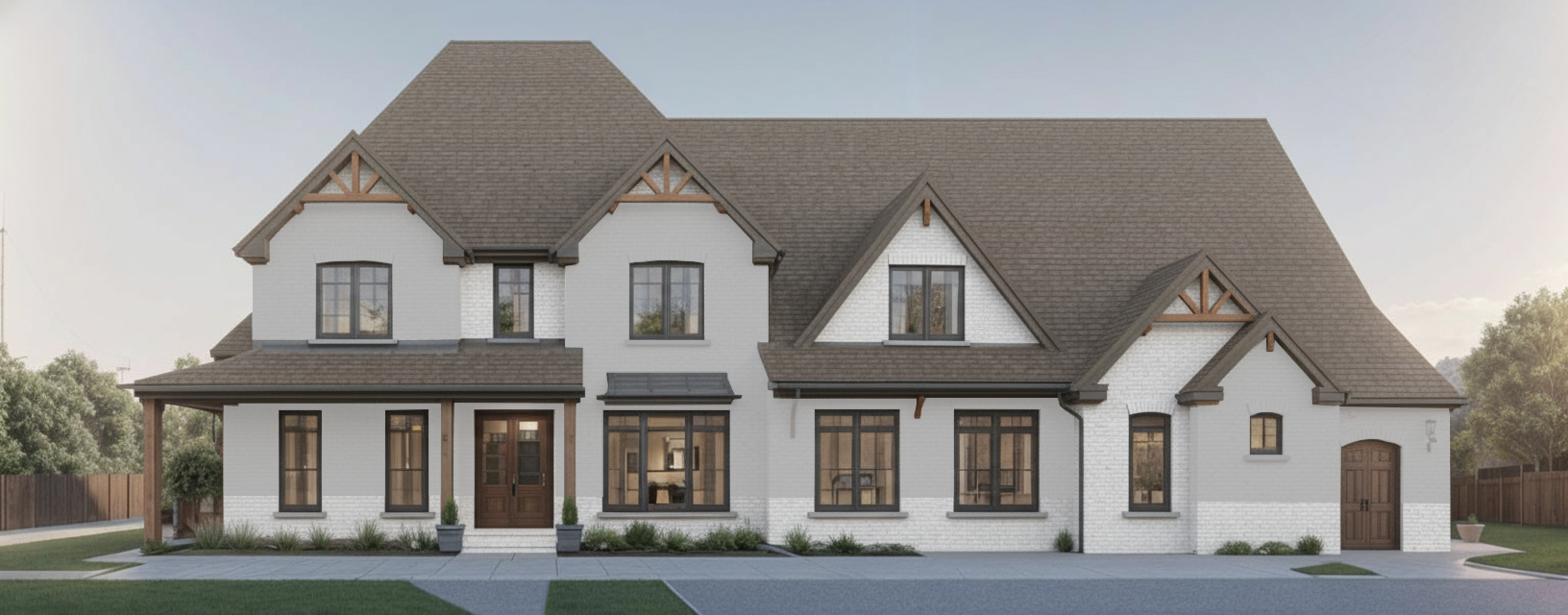 replace the pale gray overlayed siding with cream gray and light tan stones architecture