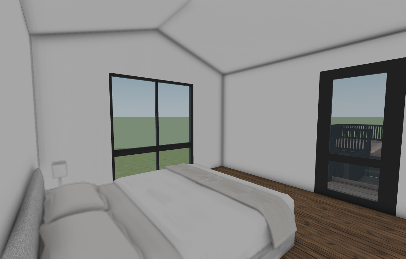 create a photorealistic architectural render of this image it s located in chapman act the windows face north show a suburban simple backyard garden garden with lowered ground trough the windows
