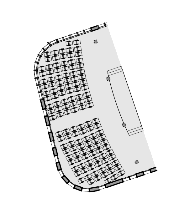 aerial shot school amphitheater plan blackout curtains and course projection