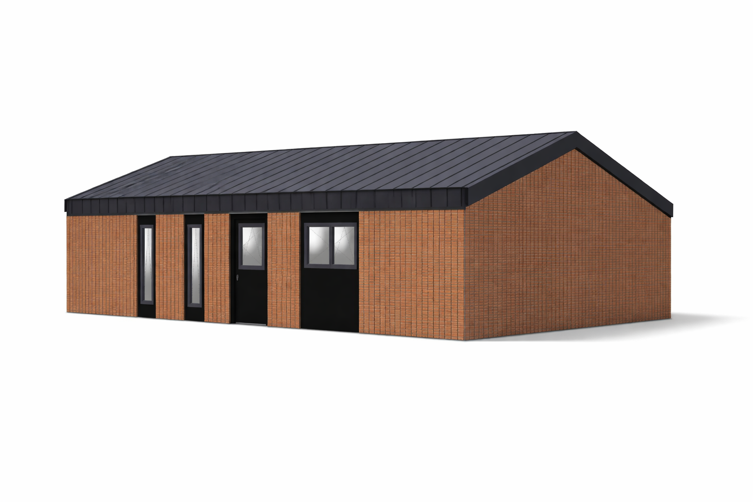 the brown facade consists of vertical boards about 20 cm wide the back also has brown boards the black facade is made of sheet metal covering the windows and doors the facades are supposed to be seamless do not create any recesses natural surroundings