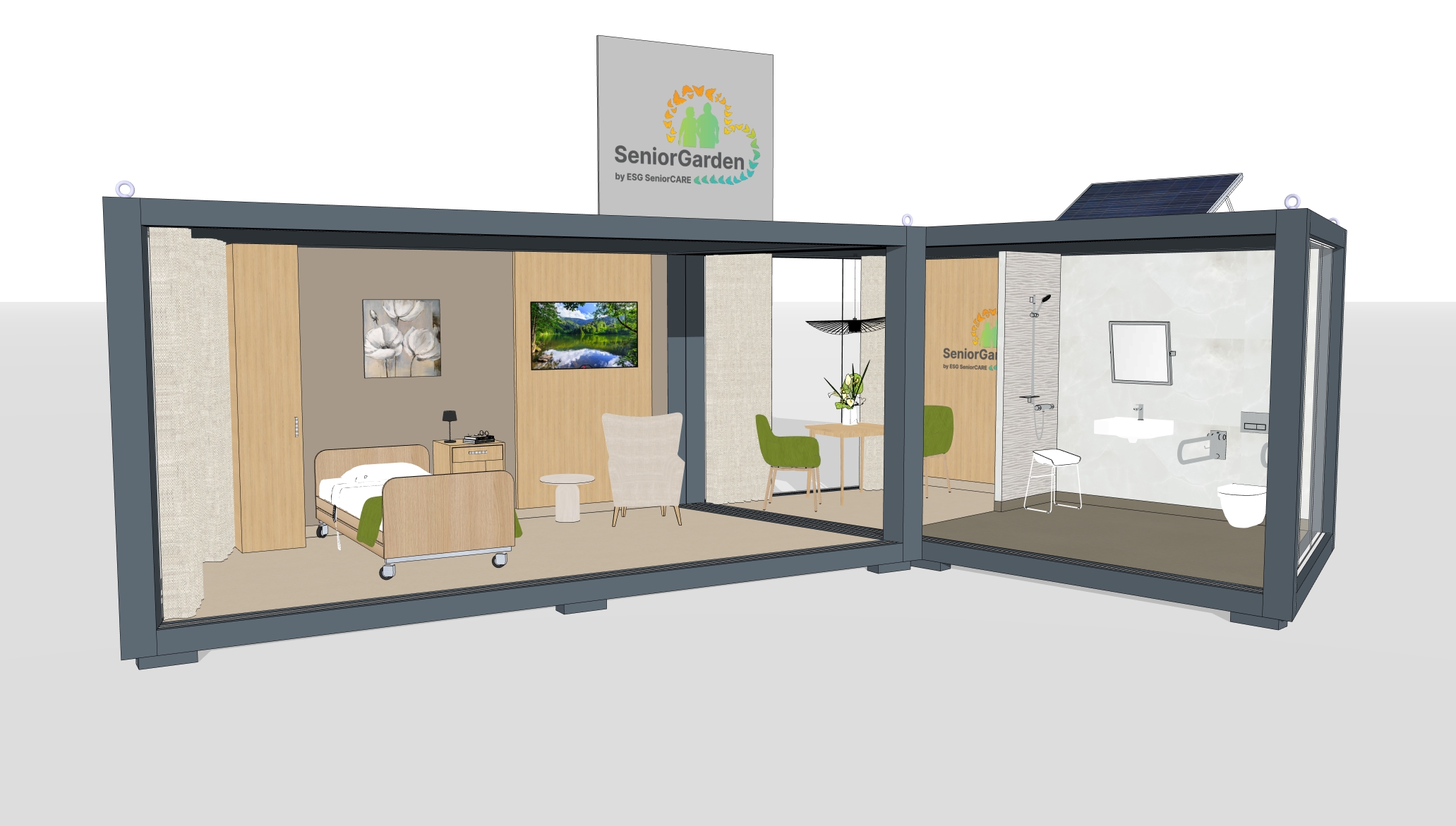 stromy za kontejnerem