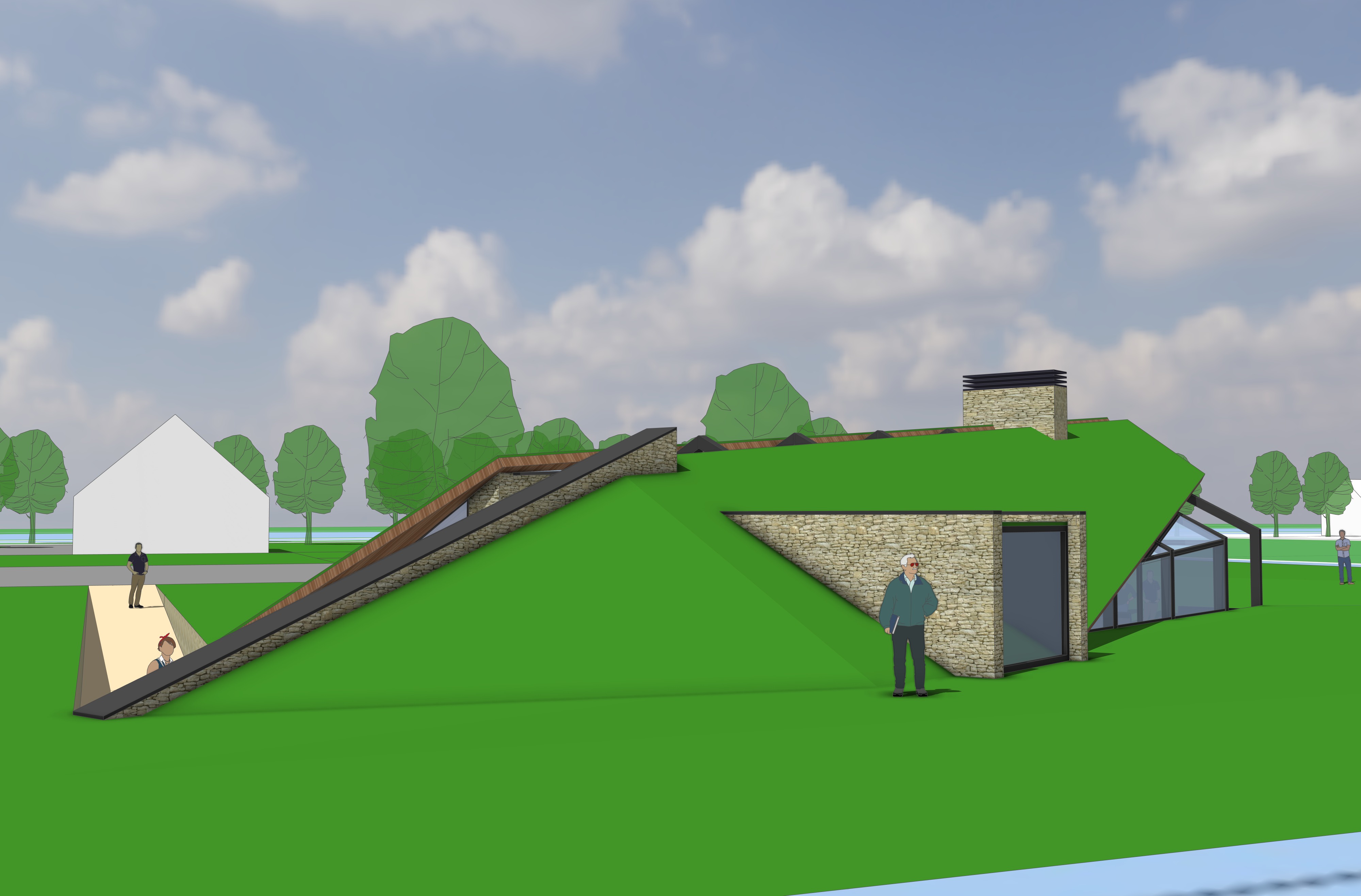 add a few trees in the back of the scene also add bushes and flowers the roofs of the house are covered in grass