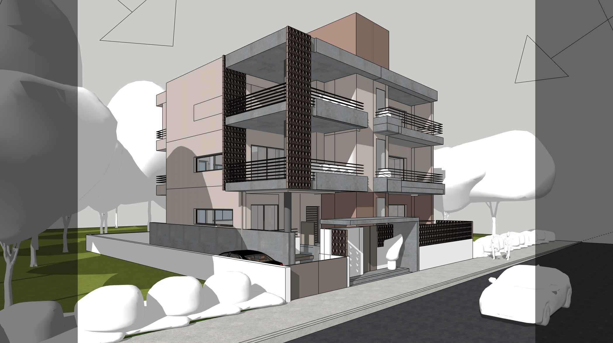 render a hyper photorealistic 3d perspective of this house located in nafplio greece keep the exact same model geometry without changing the architecture including the windows doors roof walls garage door pavement and driveway enhance the existing materials so they appear more realistic and high quality with natural textures and realistic glass reflections improve the surrounding landscape with lush mediterranean vegetation appropriate to the nafplio region such as olive trees mediterranean shrubs aromatic plants and natural planting use clear mediterranean daylight with a bright blue sky and subtle atmospheric depth lighting should feel natural and balanced creating realistic shadows and depth in the scene maintain the same camera view and composition while only improving materials lighting and landscaping render in ultra realistic architectural visualization quality cinematic lighting highly detailed textures professional architectural photography style hyper realistic rendering 8k resolution
