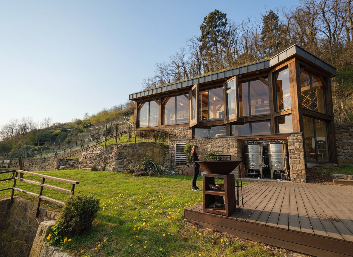 modernist exterior shot swap the heights of the roof only without changing the orientation architecture