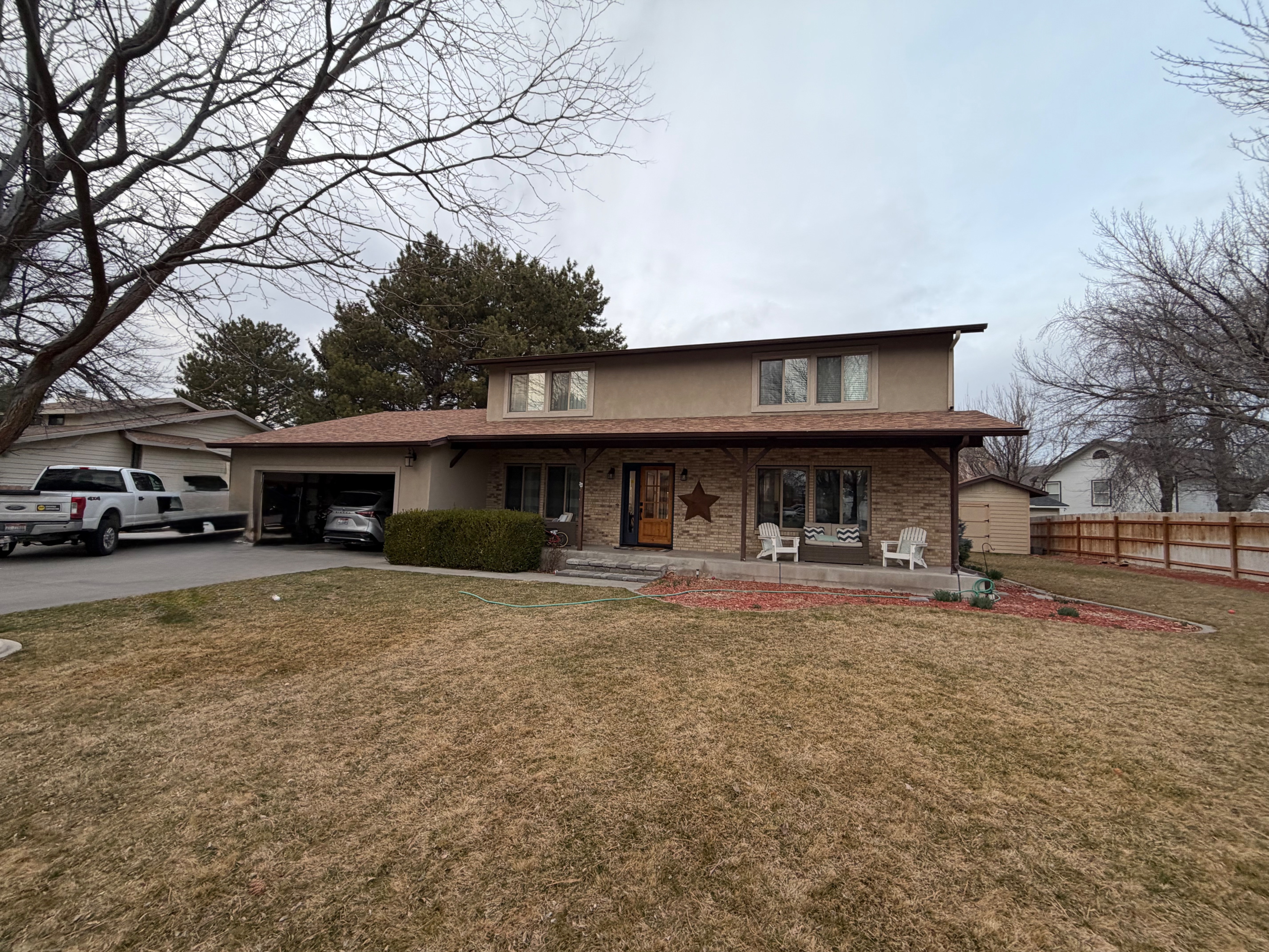 i want to add an addition to the side of this home that mimics the garage on the left side and the addition will be on the right side add two nice size windows on the front of the addition and mimic the depth and width of the garage portion keep the roof line the same as the garage and add the windows like those under the porch make it all stucco on the addition and no brick