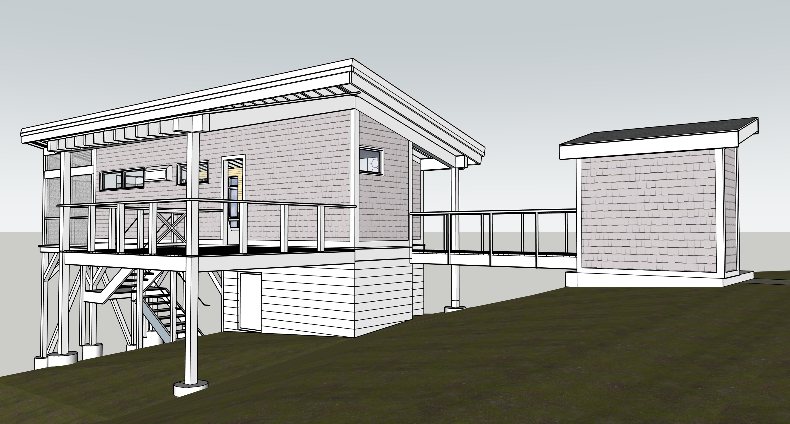 wide angle shot do not change the model place the cabin in a wild mature pine and oak forest on a sloped north carolina mountain side in a valley with a creek below