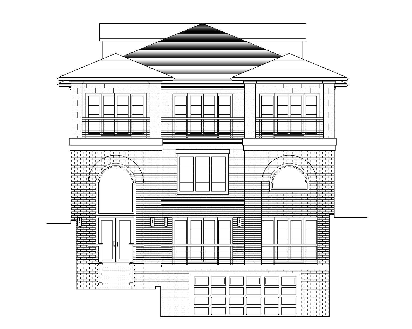 render this exact 2d architectural elevation into a photorealistic image do not change the shape massing proportions roofline window layout or any geometry keep the design 100 identical to the drawing only add realistic materials depth shadows textures lighting and surroundings use accurate perspective but preserve all original lines show it as a real built structure with high quality materials clean modern landscaping and natural daylight no stylistic changes no redesigning no altering elements just a true photorealistic representation of the exact elevation architecture