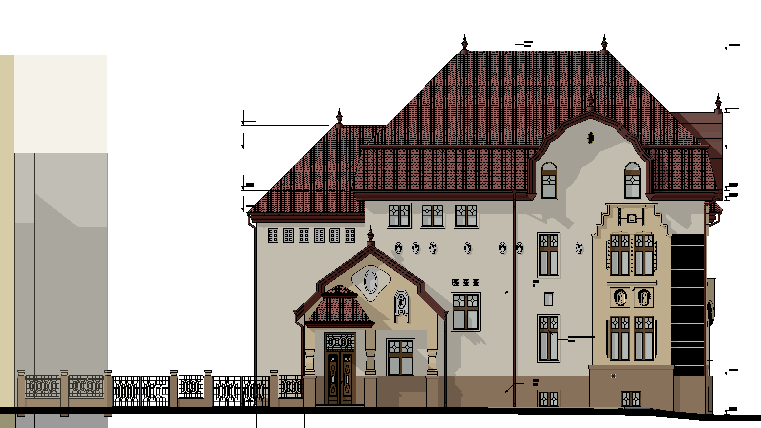 sunny day brick color roof with modern flat scale tiles cinemativ hyperrealistic render