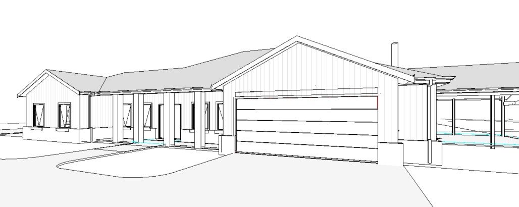 this is modern farmhouse with charcoal colorbond sheeting it house a charcoal sectional double garage door the 4 pillars at the front door is sandstone rock cladding the rest of the house house a black scyon axon cladding band round the house at 700mm high with white vertical slatted weatherboard the alfresco on the right hand side don t have any windows and timber beams and columns
