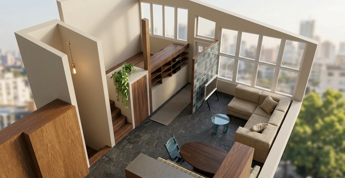 create an architectural watercolor floor plan render use the exact floor plan layout do not change the geometry walls room sizes furniture positions doors or windows render the plan in the same style as refernce image