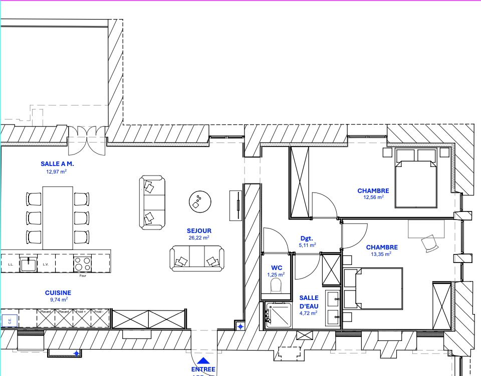 convert this floor plan into a realistic isometric 3d view of a full house show the space from an elevated angle with furniture walls and details visible modern and high end style use the same furniture as shows on the plan do not change the orientation of the floorplan