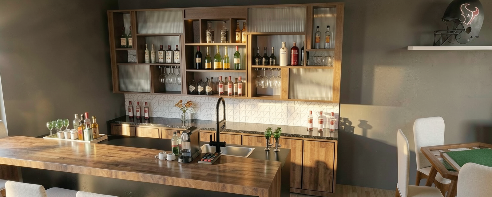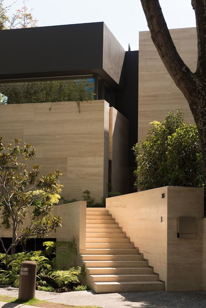 exterior shot change the materials in black stone and white