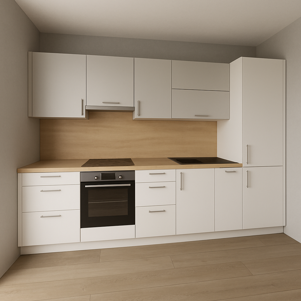 create a high end photorealistic 3d exterior architectural rendering inspired by the reference image design a two story modern craftsman transitional luxury home with a symmetrical front elevation multiple steep gables and clean well balanced massing use a calm neutral color palette with warm gray beige vertical board and batten siding light natural limestone or stone veneer on prominent gable faces and lower walls and soft taupe architectural asphalt shingles incorporate dark bronze or black window frames with tall vertically proportioned windows and subtle trim details include warm natural wood garage doors with horizontal paneling and small upper glass lites roof accents should include charcoal standing seam metal over select porch and gable elements entry should feel upscale yet restrained with a covered front porch wood posts stone base columns and simple contemporary detailing landscaping should be minimal and elegant manicured green lawn clean concrete driveway low shrubs ornamental grasses small trees and decorative stone accents lighting is bright natural daylight with soft shadows neutral white balance and a clear blue sky camera angle is straight on to slightly angled front elevation at eye level realistic scale crisp edges accurate proportions and high quality materials ultra realistic architectural visualization timeless clean and sophisticated