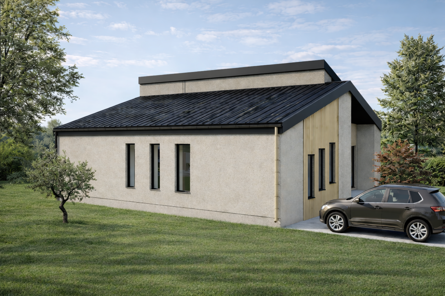 bright day time natural lighting soft shadows space is evenly liddownlights enterior photography realisticslightly reflective led ip lighting bellow the upper cabinet in the kitchen a dark teal herringbone patterned tiles on the backsplash in the kitchen black appliances