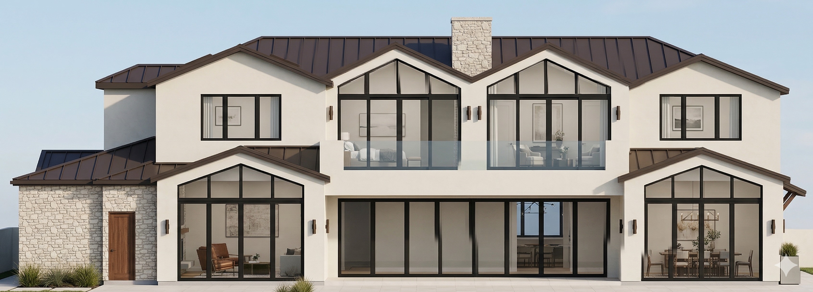 regenerate this into a photorealistic style image with some trees in the background make the stucco a smooth earth toned stucco color