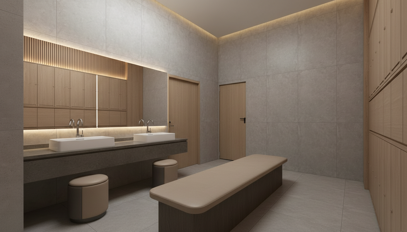 photorealistic enhancement of the provided architectural render preserve the exact architecture layout materials furniture placement and fixtures from the original image with no redesign or modifications the purpose is only to improve realism and lighting quality render as high end interior photography using a full frame camera with a 24 35mm architectural lens balanced exposure realistic dynamic range subtle depth of field and natural color grading the image should look like a professionally photographed luxury interior rather than a computer render soft natural daylight diffused window light global illumination balanced exposuredo not change architecture do not change materials no redesign no new objects no additional lights no glowing fixtures no light from shower heads or faucets no dramatic shadows no surreal lighting no warped geometry no stylization the space should be lit by 2 can lights in the ceiling there are no windows in this space therefore there should be no light shining from any direction there should be a matte black kitchen faucet over the sink the faucet should be a little taller and have one lever handle the faucet should be centered on the sink the cabinet color should be a medium toned wood