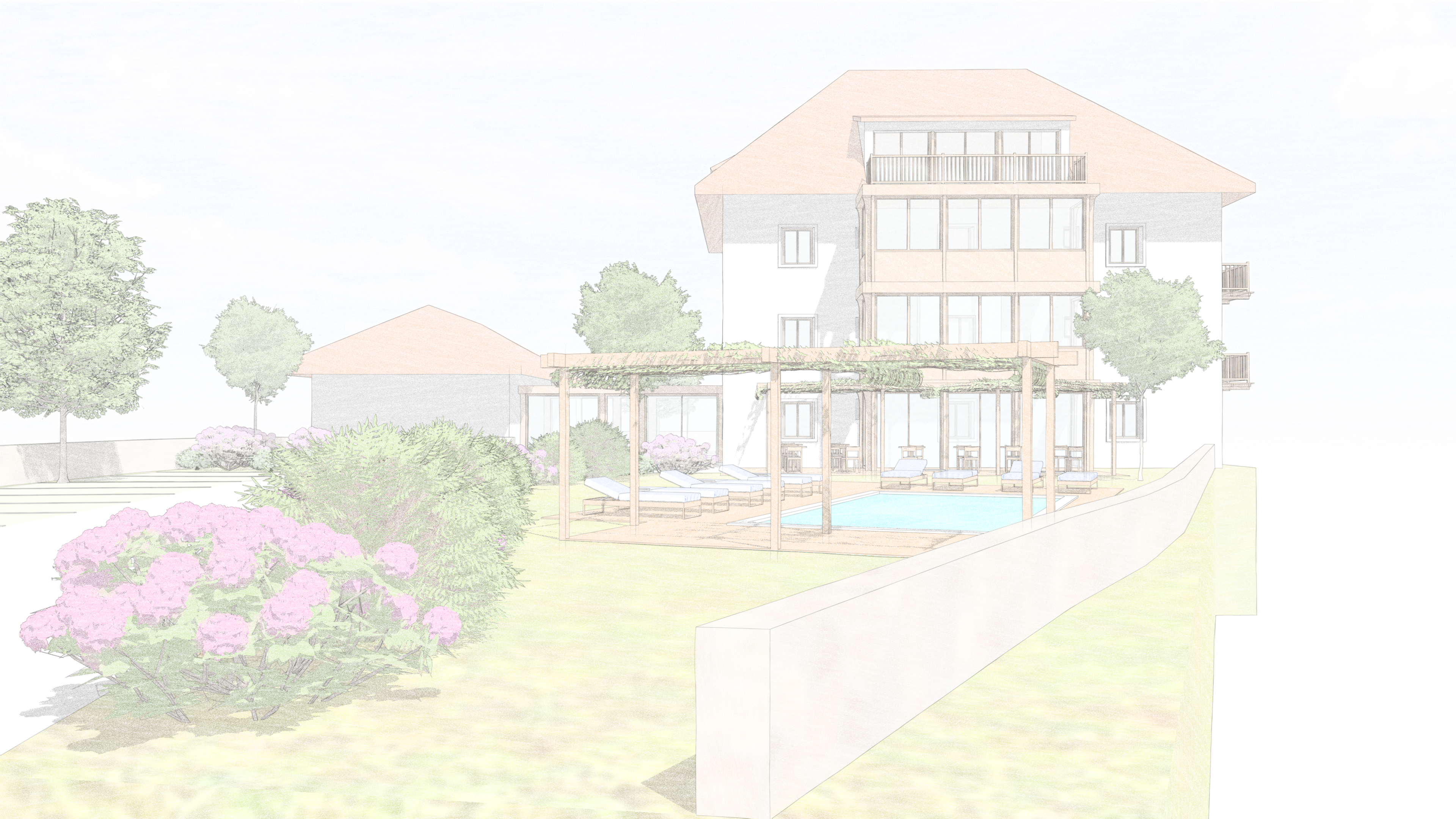 redraw as a sketch in pencil white black and grey only lines no hatching no fotorealistic architecture