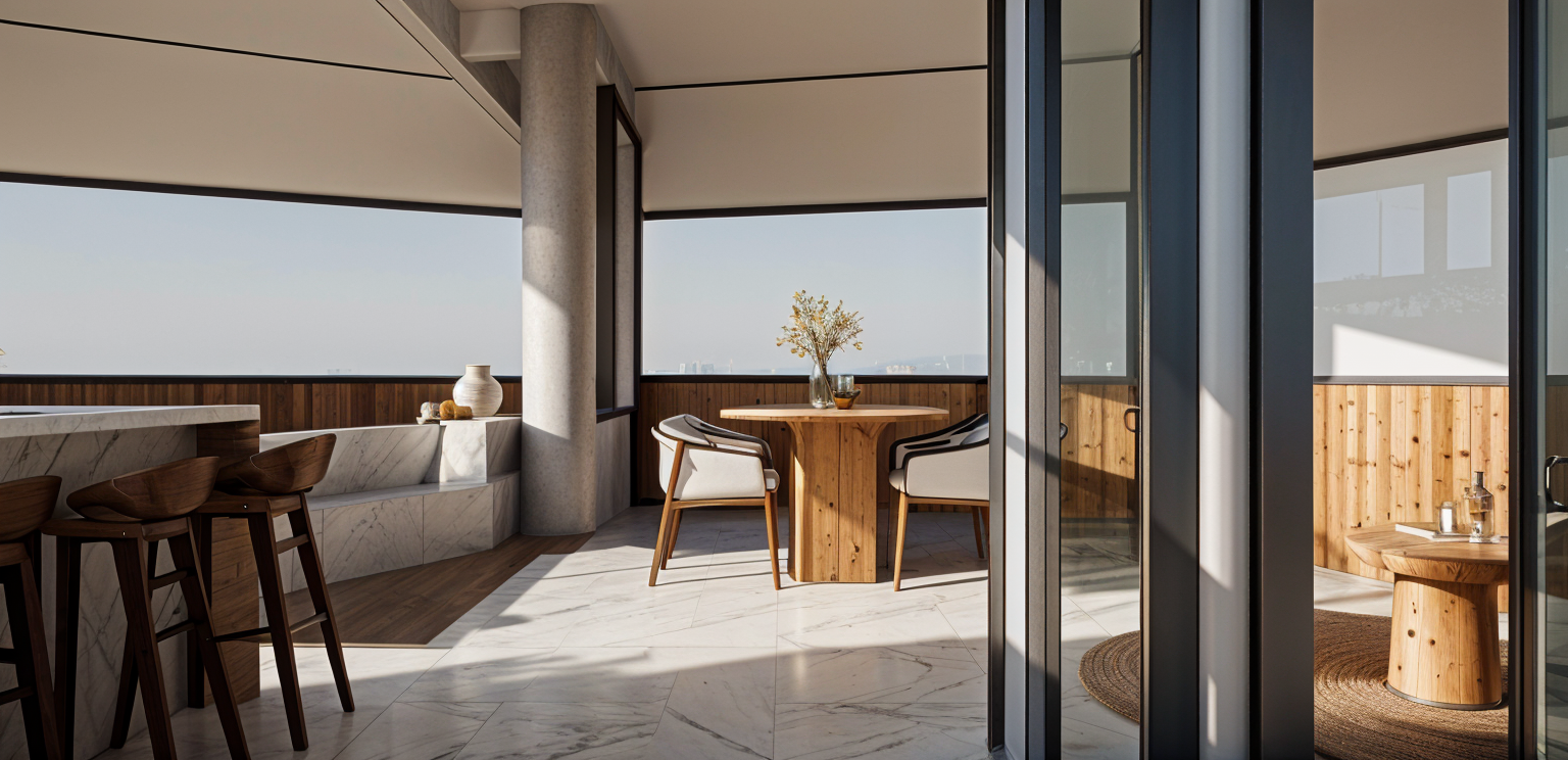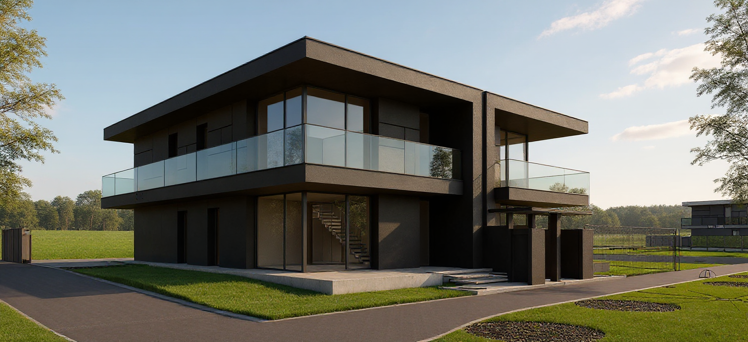please remove the dotted lines and completed a realistic 3d rendering in natural daylight use a warm white color pallet please make the entire house in warm white brick