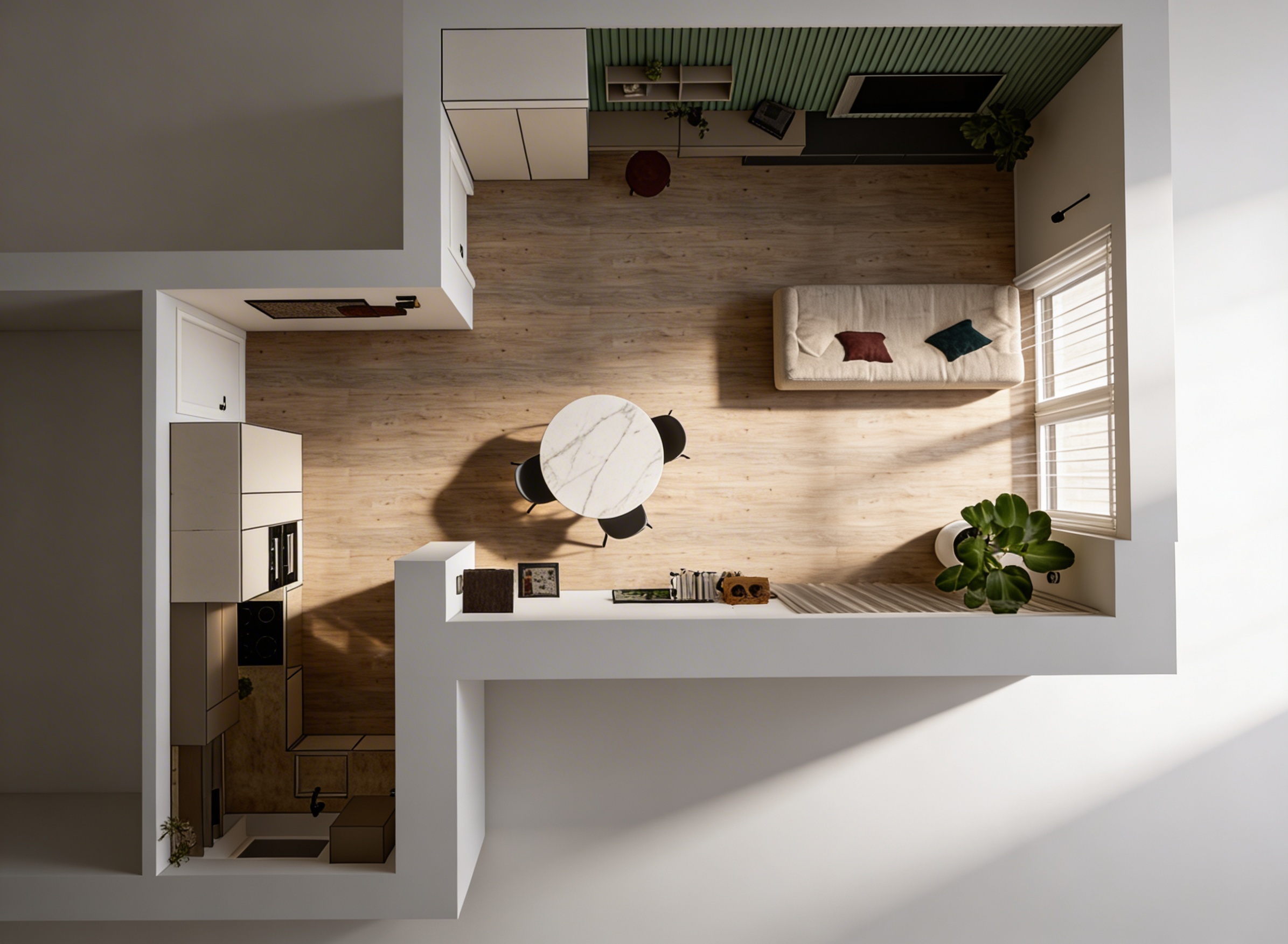 transform an unfinished raw construction interior into a refined contemporary residential space with a strong architectural character strictly preserve the original staircase geometry railing and all existing wooden structural elements no reshaping no reinterpretation place a slim tall modern freestanding wood burning stove exactly in the center of the space positioned in front of the staircase the stove should have an elegant vertical proportion minimalist scandinavian expression similar to j tul the chimney must rise vertically in a clean uninterrupted line without intersecting cutting through or touching any staircase elements floors or structural planes completely remove all temporary protective fabrics from the stair treads add contemporary suspended pendant lighting architectural and minimal enhancing verticality and spatial clarity no decorative or retro forms under the staircase on the left side design a tall narrow continuous built in bookshelf positioned in the left rear corner executed in a refined wooden decor the bookshelf must be a single cohesive volume with subtle integrated ambient backlighting the remaining wall surfaces under the staircase should be finished as a continuous wall cladding in the same wood decor as the bookshelf creating a calm unified material plane no segmentation no shelving elsewhere place a comfortable lounge oriented modern armchair near the left wall soft and inviting with a contemporary designer character relaxed proportions high comfort premium materials not rigid not sculptural only floor finish seamless poured epoxy resin flooring in a soft beige grey tone matte or satin finish minimal and clean overall atmosphere fresh modern confident original clearly reflecting a contemporary timber frame family house avoid any archaic rustic alpine or nostalgic expressions lighting strategy balanced natural daylight combined with warm precise ambient and accent lighting creating a representative high end architectural visualization style references contemporary european residential architecture modern scandinavian minimalism restrained material palette architectural clarity high realism architectural visualization quality clean composition soft shadows natural proportions no bookcase just wall panels refine the existing interior render with only one essential spatial correction move the existing fireplace clearly and noticeably further into the space closer to the viewer and significantly further away from the rear part of the staircase than in the current image this fireplace repositioning is critical and must be clearly readable in the final image the shift must be approximately 30 cm forward into the space not symbolic or minimal but visibly detached from the staircase volume the fireplace design proportions materials finish and detailing must remain completely unchanged no redesign no resizing no stylistic modification position change only the chimney must remain in one perfectly straight vertical line clean and uninterrupted it must not intersect touch overlap or pass through any part of the staircase stair surfaces railing or structural elements in any way all staircase geometry railing construction walls floor finishes lighting furniture materials and spatial composition must remain strictly unchanged no additions no removals no reinterpretations the final result must read as a precise architectural correction focused solely on fireplace positioning with everything else preserved exactly as in the original image high realism architectural visualization quality accurate scale clean shadows neutral color balance