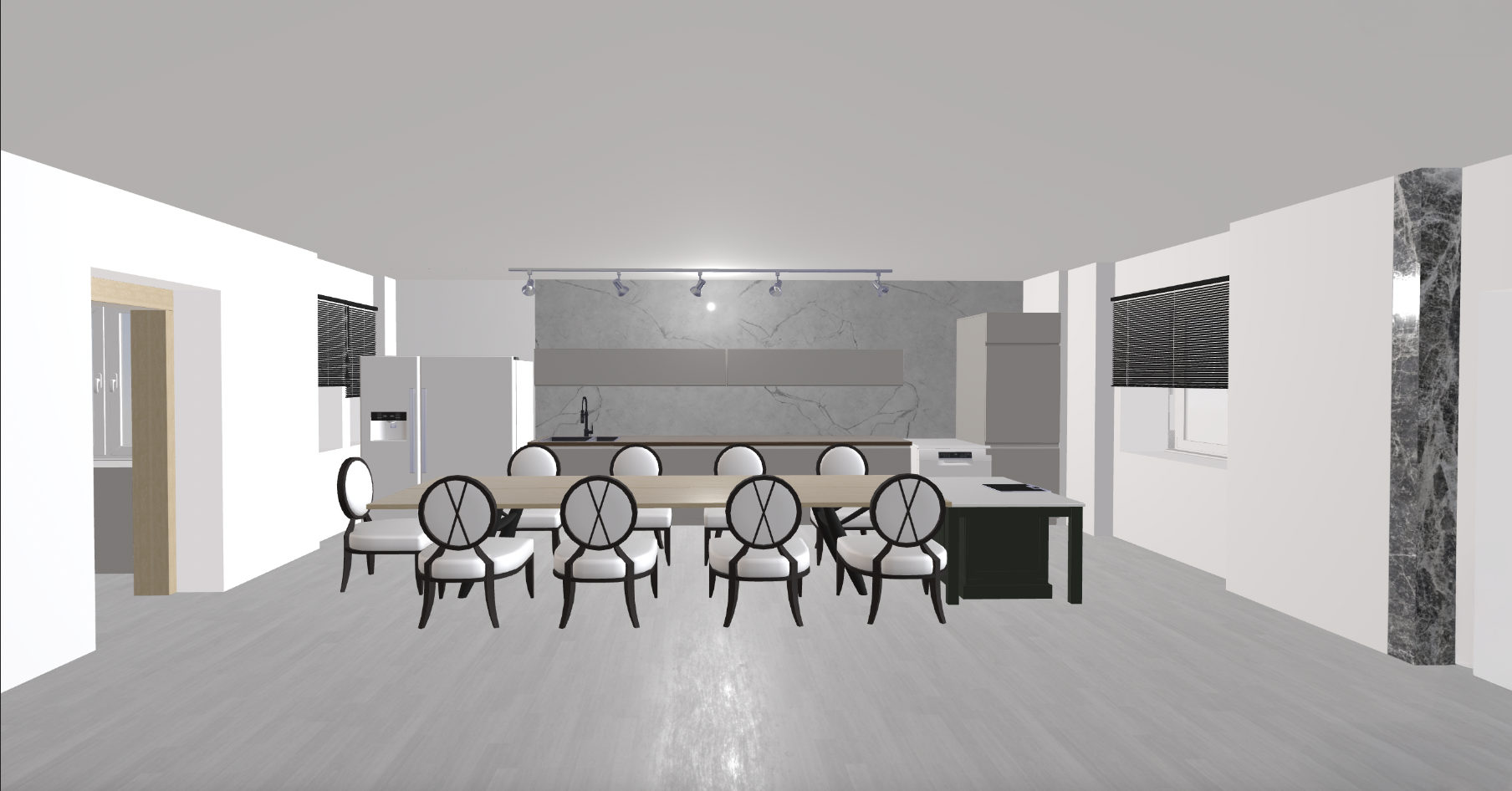 exterior shot photorealistic architectural rendering generated from a cad 3d model of a galley kitchen no kitchen island linear parallel layout only refined european apartment proportions warm patinated metal cabinetry in bronze and brushed stainless steel tones soft matte finish with subtle oxidation texture integrated handle less fronts natural stone or lime plaster walls with warm beige undertones historic ceiling cornice detail dark timber flooring soft indirect led under cabinet lighting low contrast cinematic daylight entering from a side window gentle shadow falloff calm atmospheric mood minimal objects ceramic bowls cups metal cookware curated still life styling ultra real materials physically accurate reflections global illumination shallow depth of field high end interior photography look quiet luxury editorial realism no people no island no exaggeration no wide angle distortion