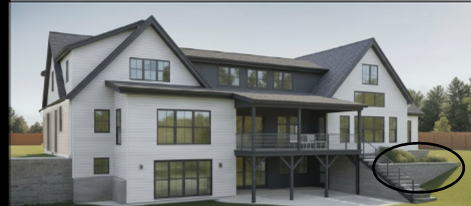 rotate the retaining wall that is circled 90 degrees so it is parallel to the stairs