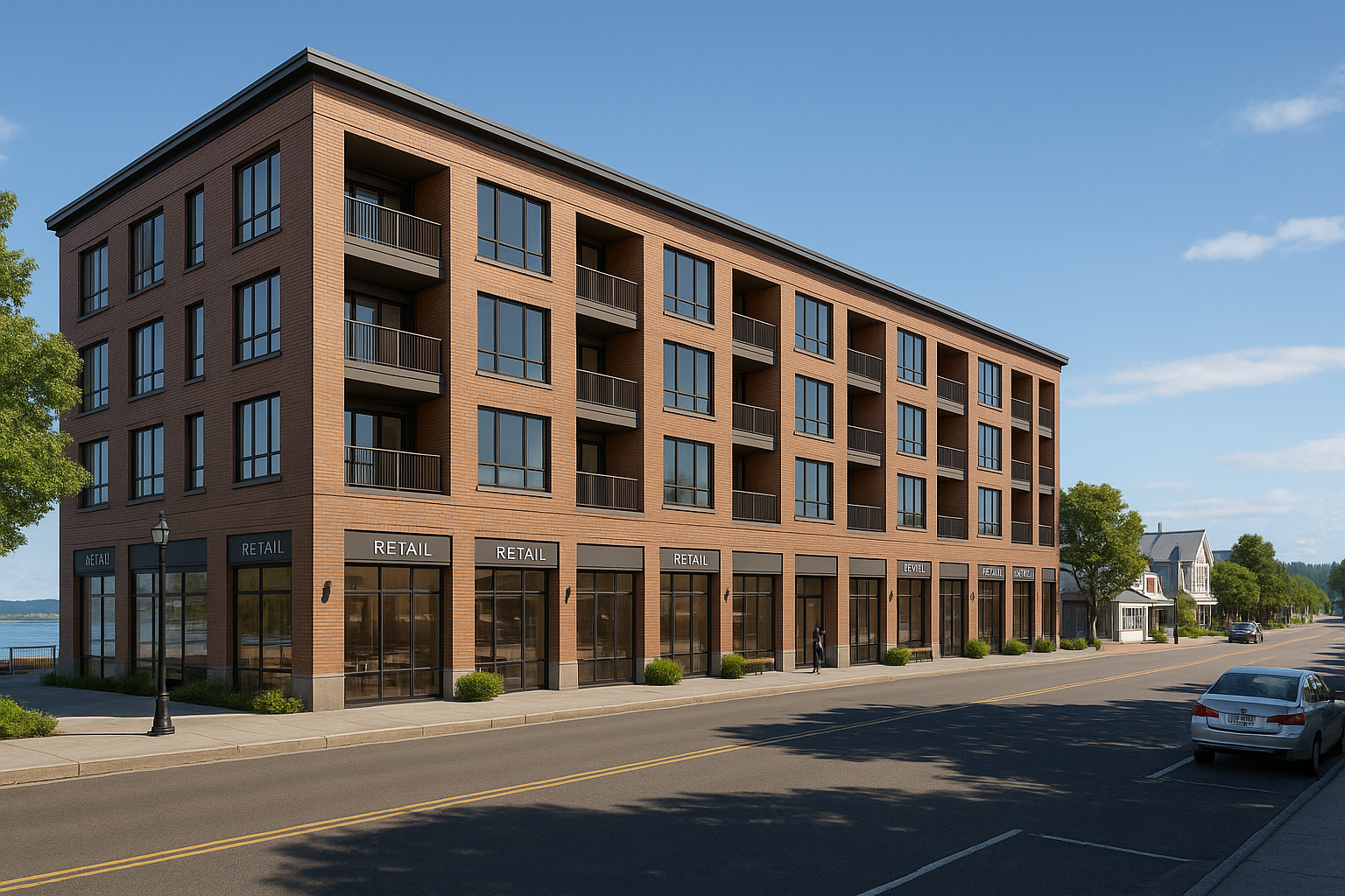 modernist exterior shot increase the size of this building to 6 floors architecture