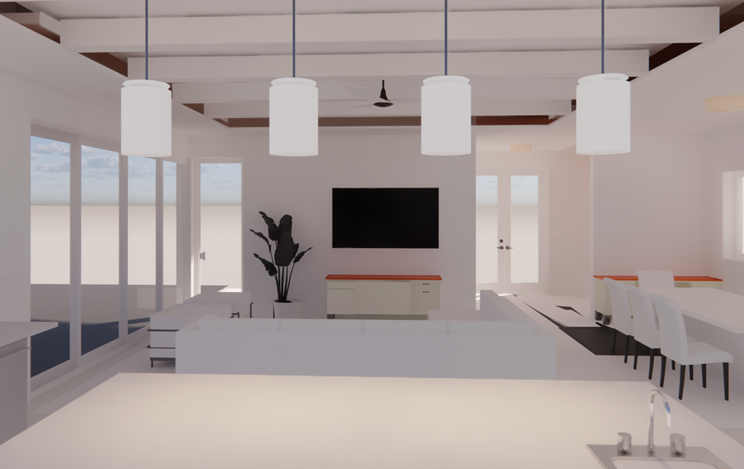 can you please make this rendering be decorated in a coastal transitional way