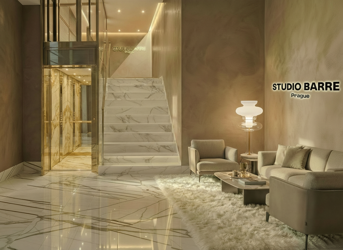 mirror on left wall all height brass frame modern