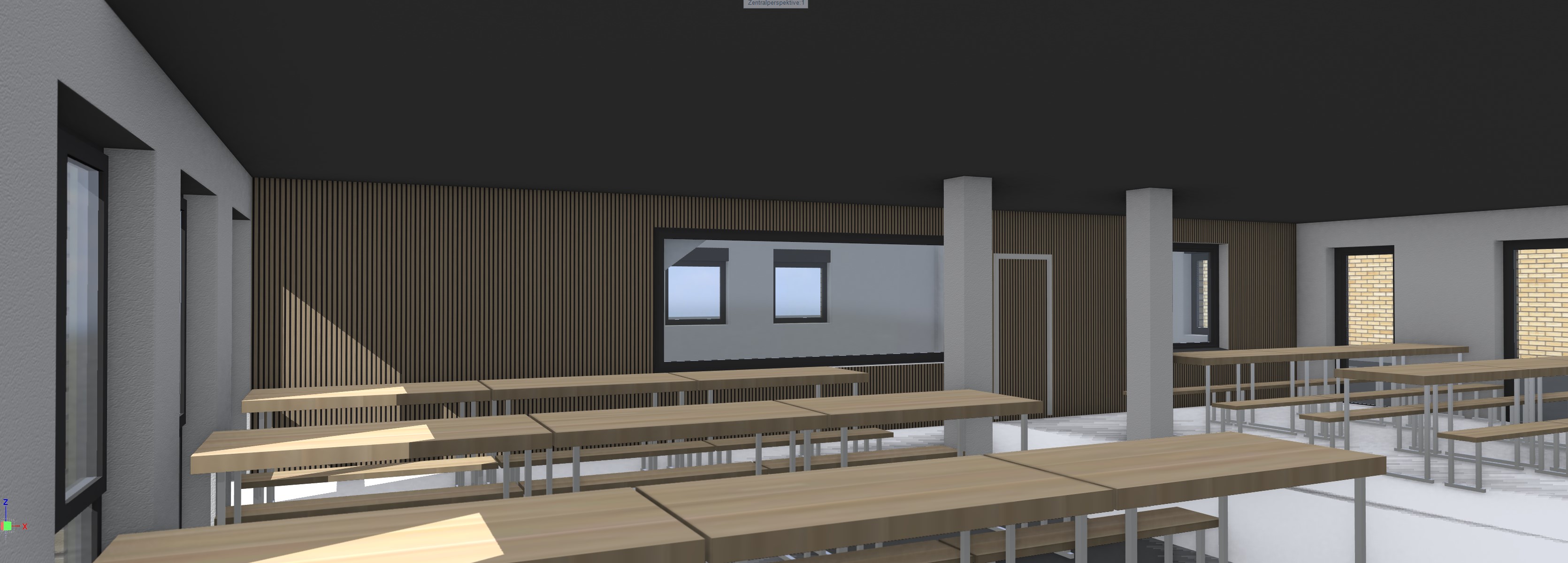 the acoustic panels are in oak and lighter