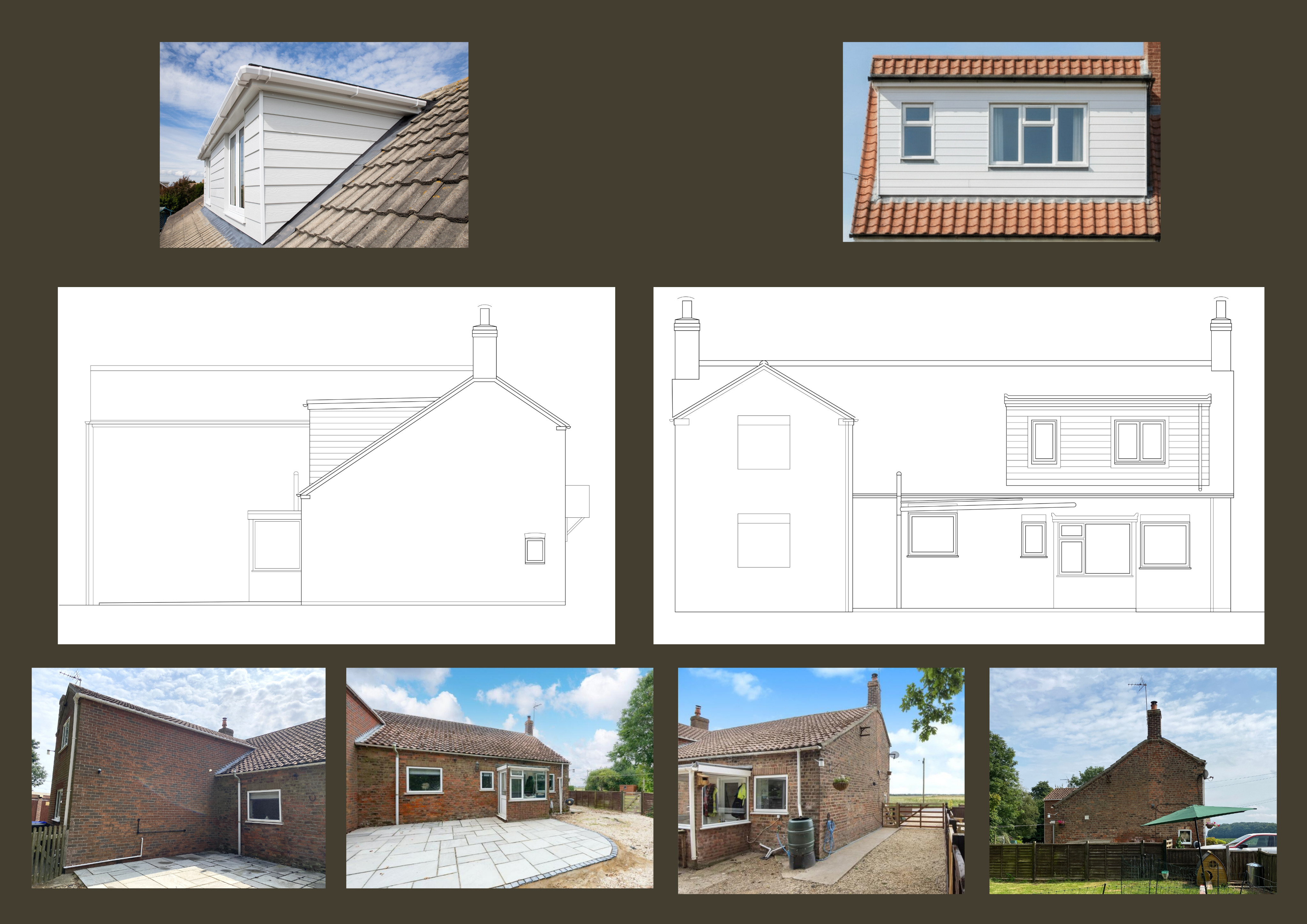 exterior shot keep the building exactly the same as source image and use colours and materials and detailing shown on the mood board image