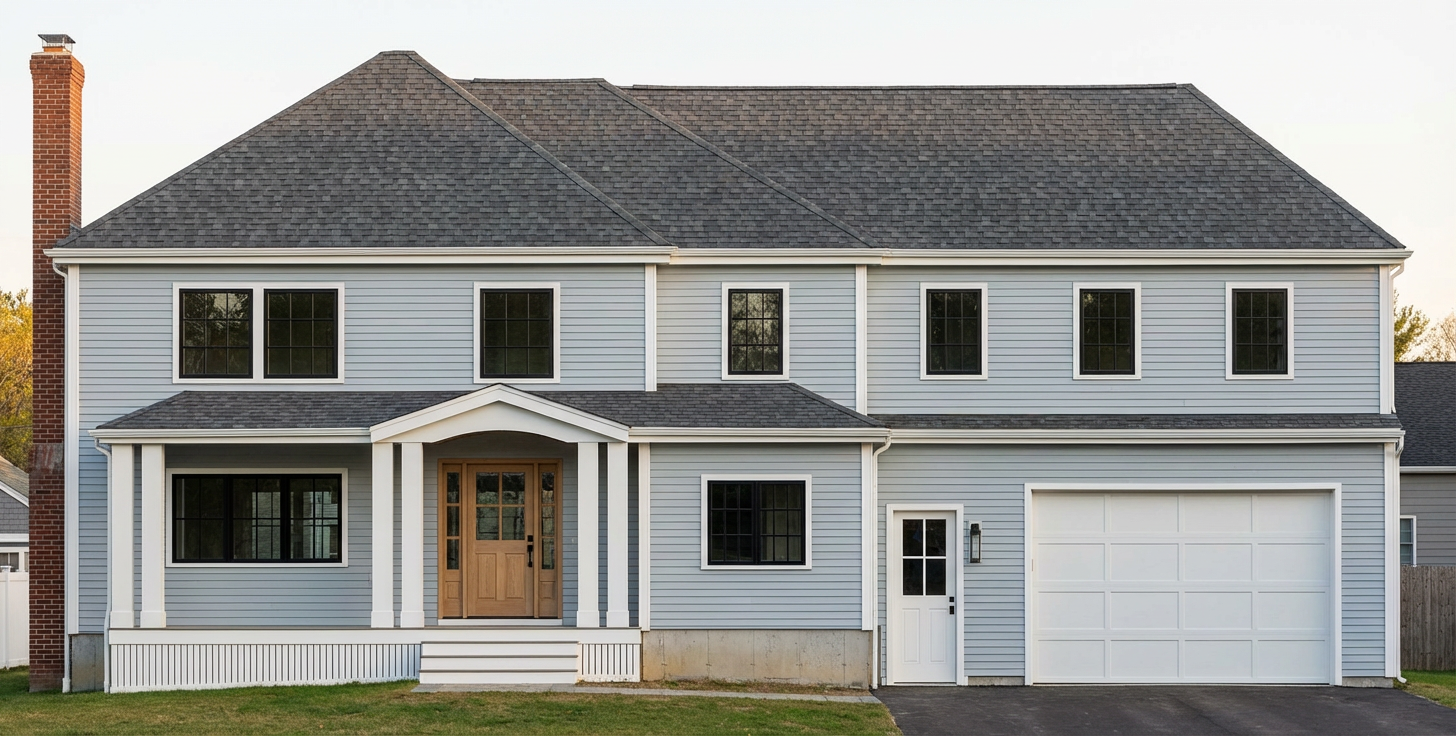 make a back elevation rendering of the back of house elevation nothing else that matches the style of the front use the floorplan to create the back elevation