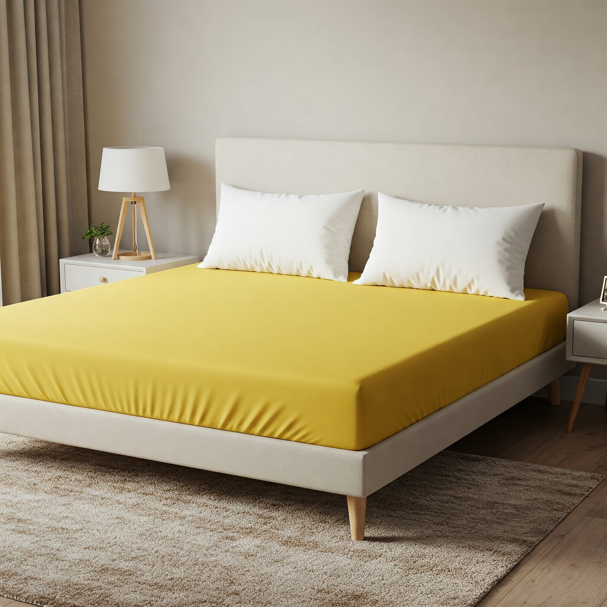 please change the white sheet on the bed to a color code hexa fee690 everything else should stay the same pillows are white