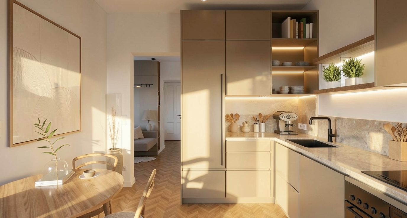 crea una imagen fotorealista a partir de este sketchup de buena calidad y lo mas real posible realza las texturas ten en cuenta que es una tienda de alimentacion los estantes y las cabinas de frigorificos deben estar iluminadas para la correcta presentacion de los productos ilumina mas la estancia se ve raro dale claridad se ve oscuro aclara el ambiente es una tienda y tiene que estar bien iluminada