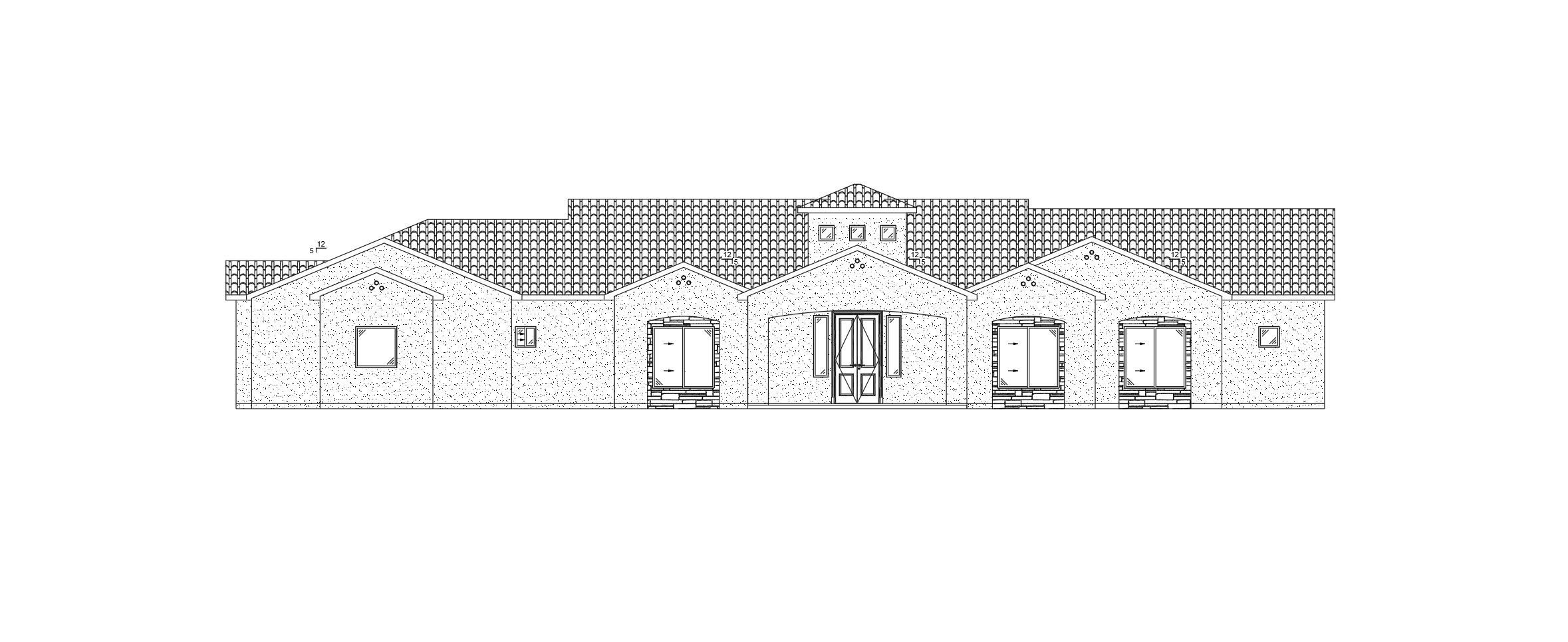 generate beautiful elevations renders with light inside with white stucco on front walls and black tile roof top down from above with sunlight