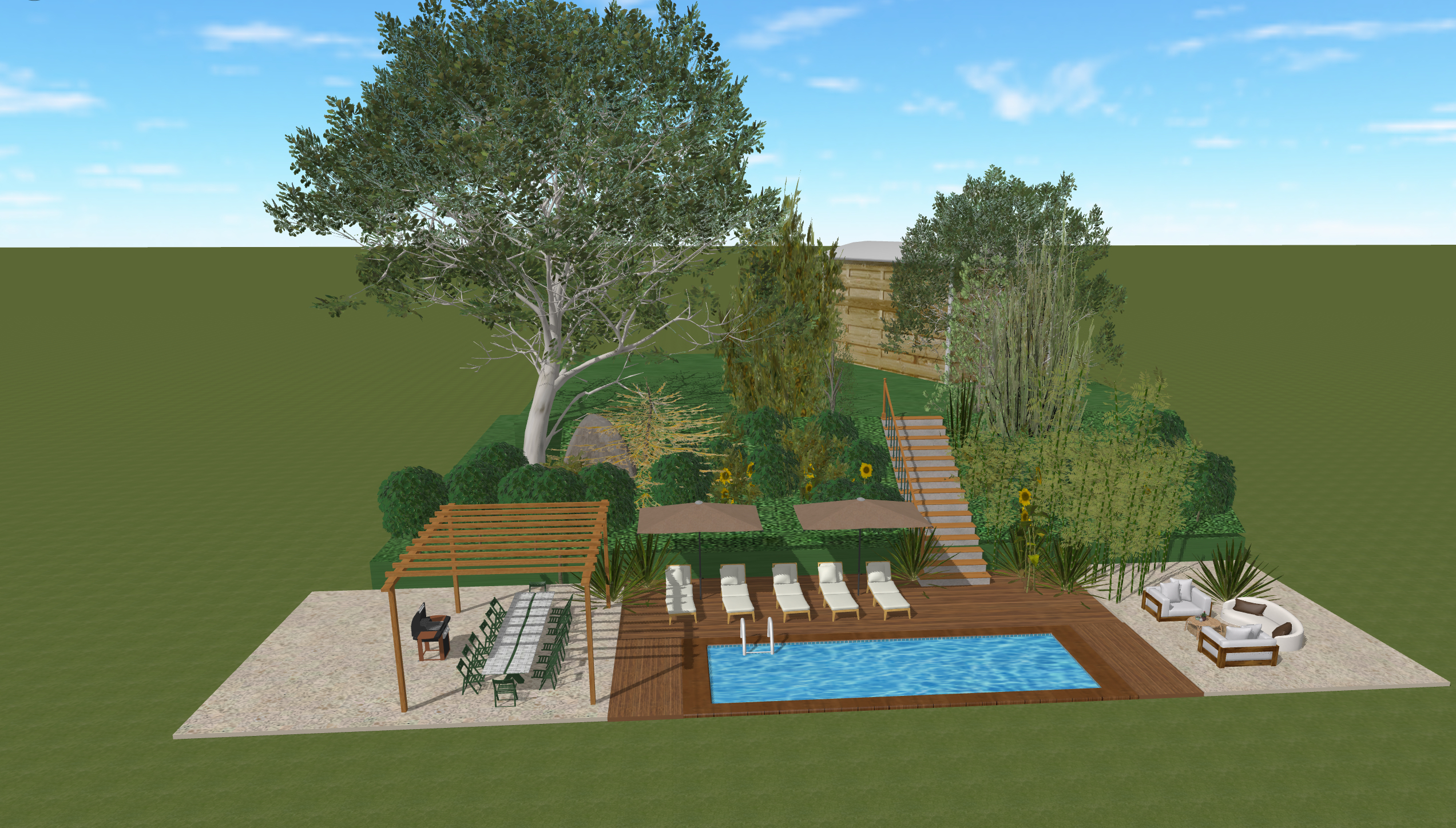 maintain the atmosphere of a luxury tuscan farmhouse the pool with a sand colored liner that reflects the light on a sunny summer day under the pergola a beautiful carrara marble table photorealistic architectural photography of a luxury relax area fabric sofa soft natural sunlight flowing troughs the trees high end interior design hyper realistic textures 8k resolution cinematic lighting minimalist aesthetic sharp focus do not change the arrangement of the furniture maintain colors add some decorations and some details as ad magazine style