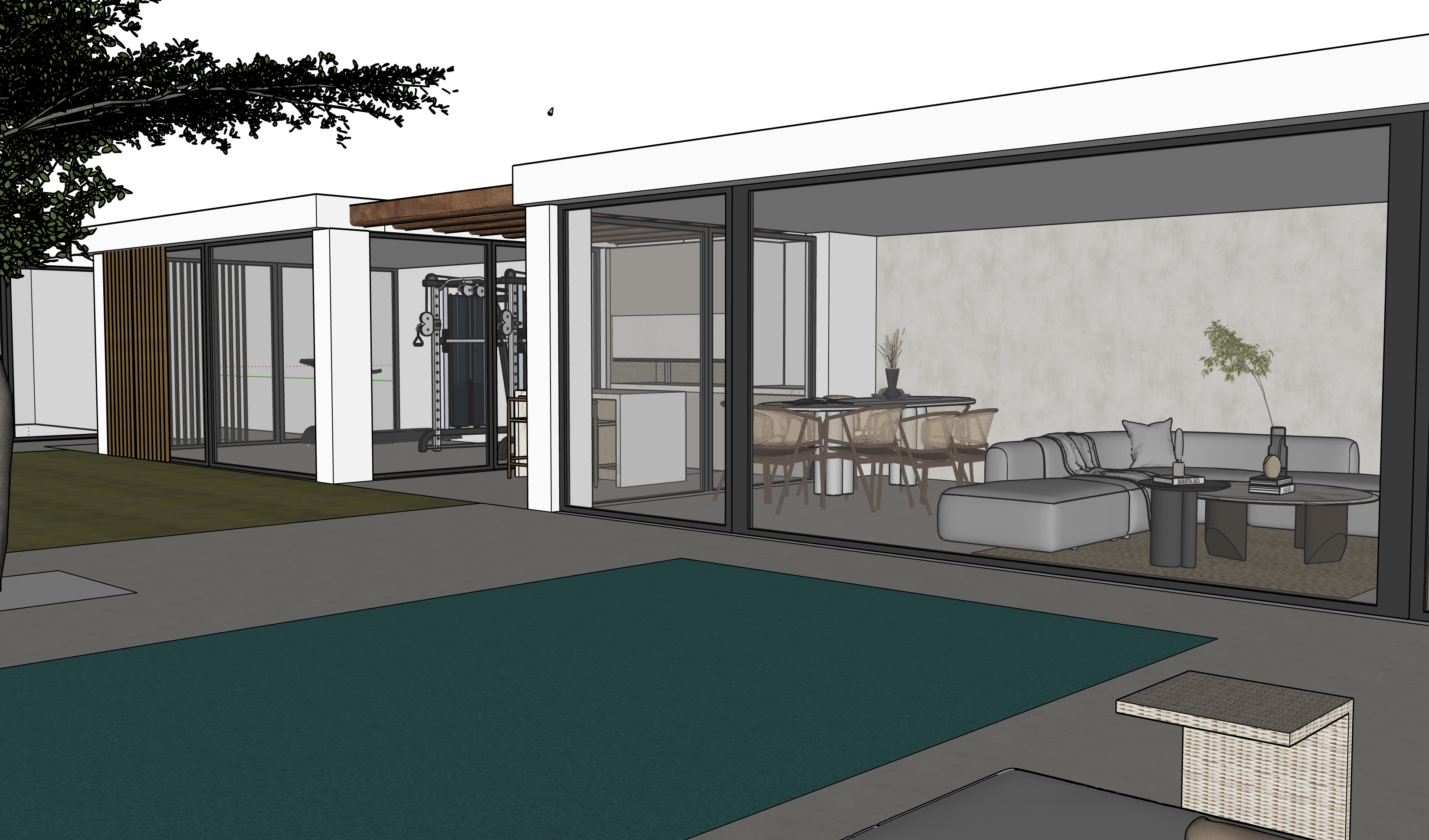 mejorar iluminaci n con sombras naturales hacer dic soleado el c sped verde de la izquierda llenarlo de toda plantaci n en gauras stipas y lavandas la parte celeste es piscina