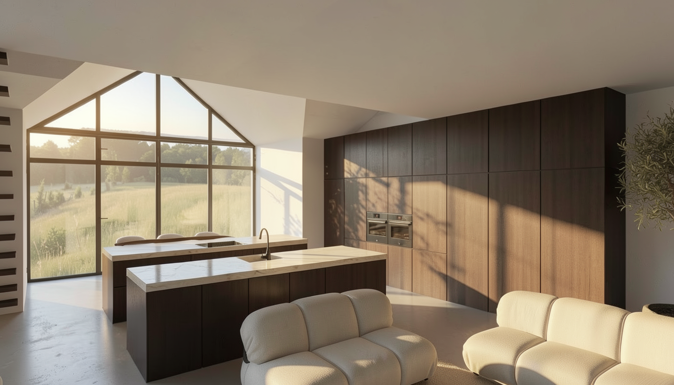 use the uploaded render as the exact base image maintain the original camera angle lens length perspective framing composition and spatial proportions exactly as shown do not alter architectural elements wall locations ceiling details millwork flooring layout window placement or built ins preserve all existing materials finishes textures paint colors tile stone wood tones and lighting design exactly as they appear maintain the same daylight direction shadow quality exposure and overall color temperature keep all furniture decor styling and layout exactly the same unless explicitly instructed otherwise do not reinterpret the design restyle the space modernize it or adjust proportions only modify the specific items that will be listed in the next prompt the goal is to enhance realism and material fidelity while preserving the original design intent 1 1 output should be ultra photorealistic with natural material depth accurate reflections realistic fabric texture subtle imperfections and true to life lighting update the pendant to look more like a cream mesh with fine ribbing detail from top to bottom
