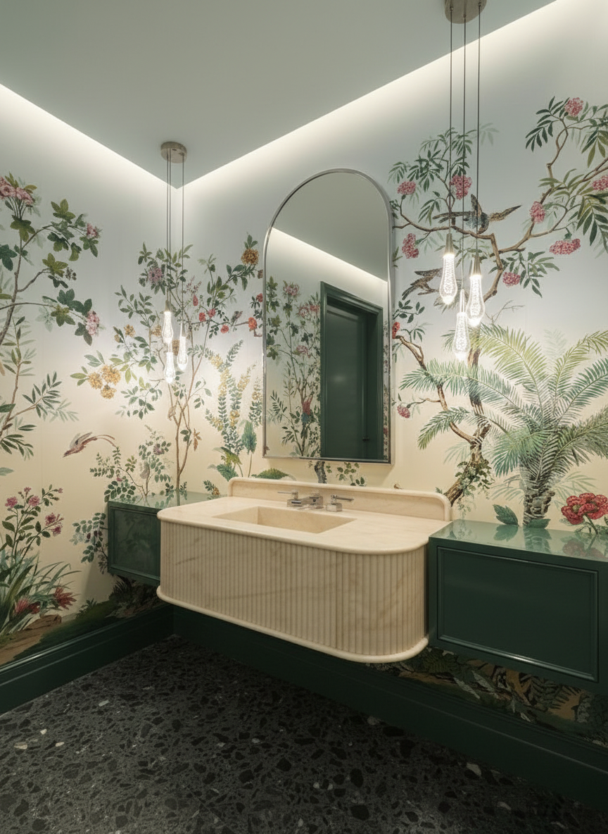 modern interior shot render this modern bathroom making the walls on the shower blue marble remove the linen cabinet and move vanity to the wall vanity to be light wood floating wall mounted with white marble countertop architecture