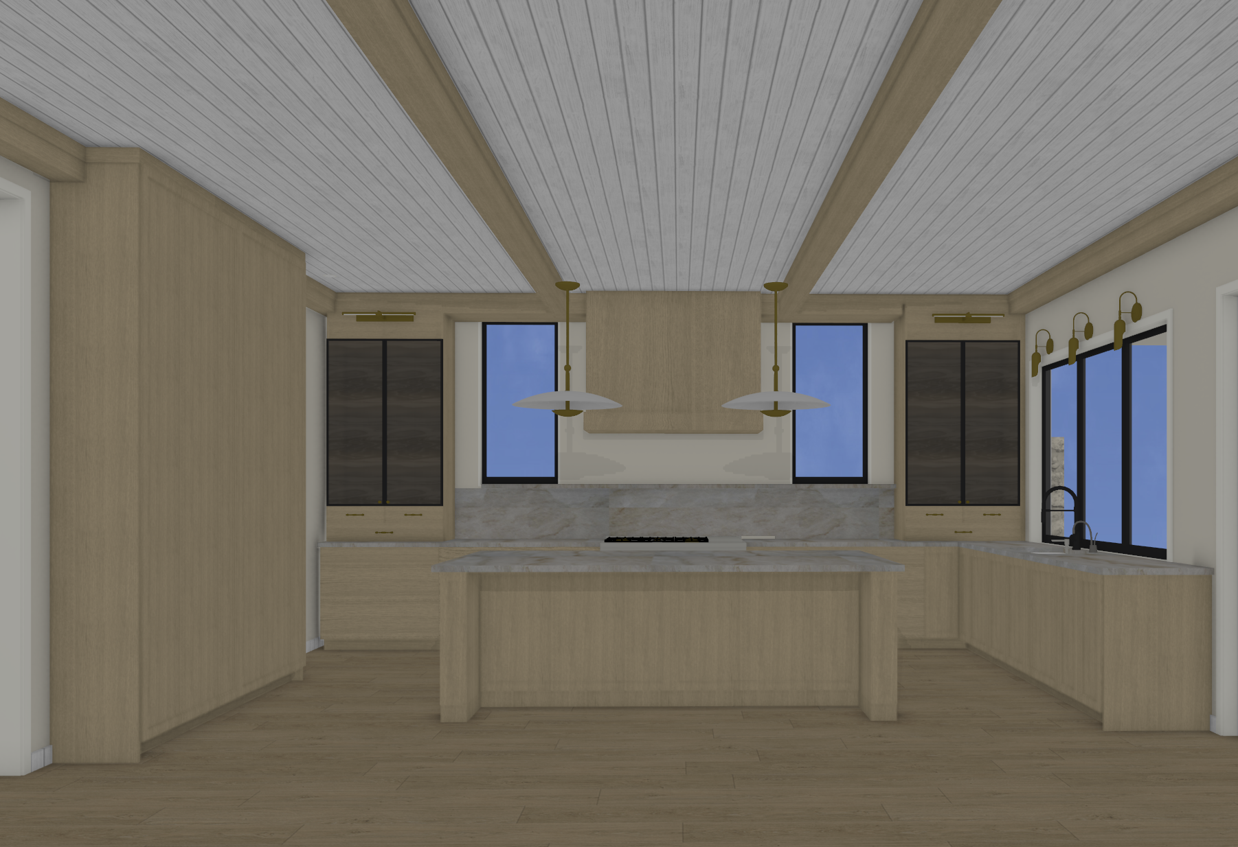 light oak cabinetry dim lighting