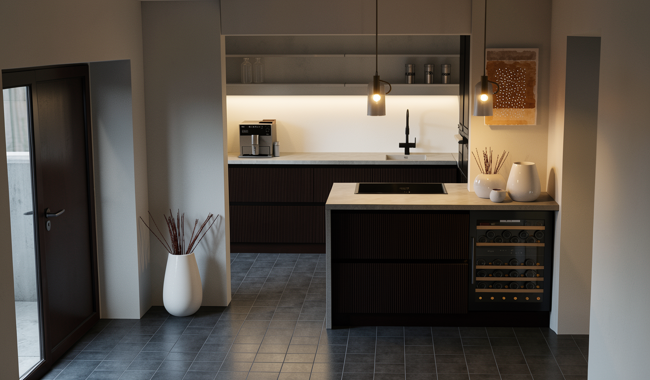 do not change or modify the design or material only make this render more realistic like 3d visualizer do not add too strong daylight add garden and burj khalifa to outside of window