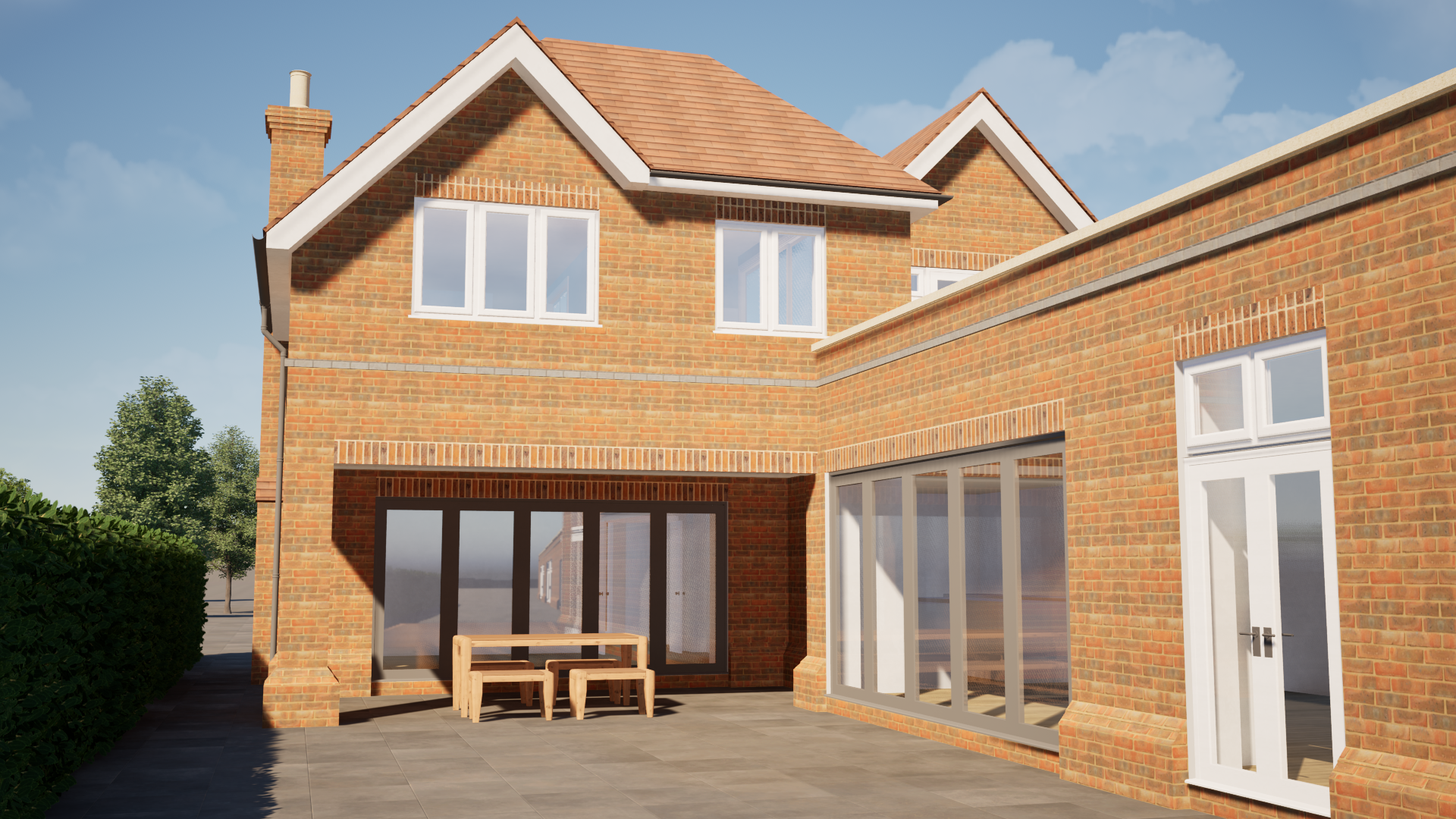 photo realistic render or rear extension to house