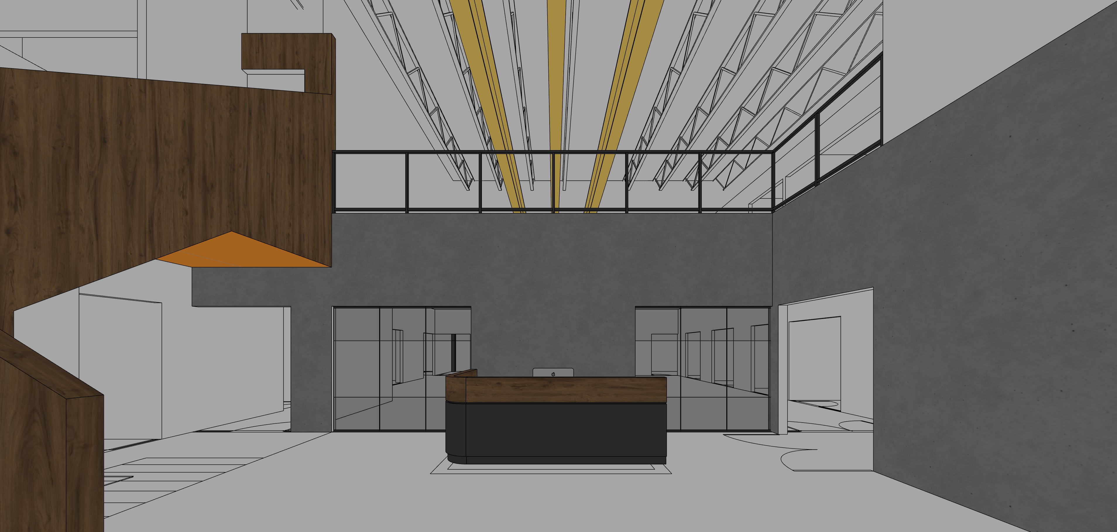 create render for atrium office warm interior lighting