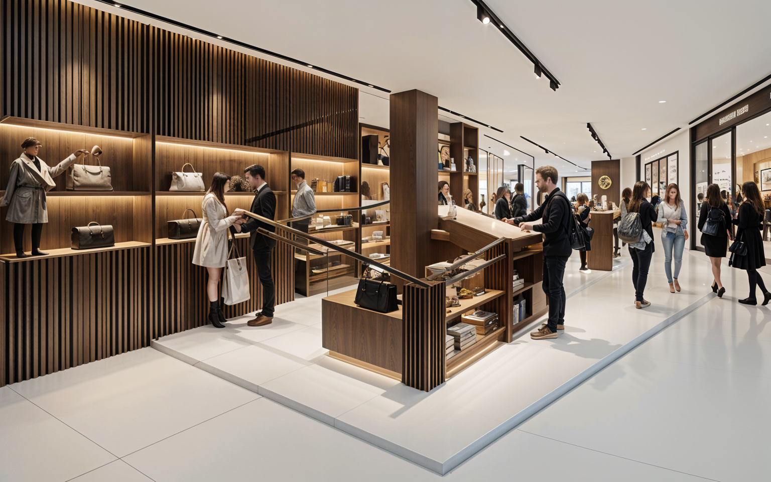 photorealistic interior soft light through the windows white terrazzo floor with small fine stones light oak wood walls and ceiling white natural plaster the desks are white