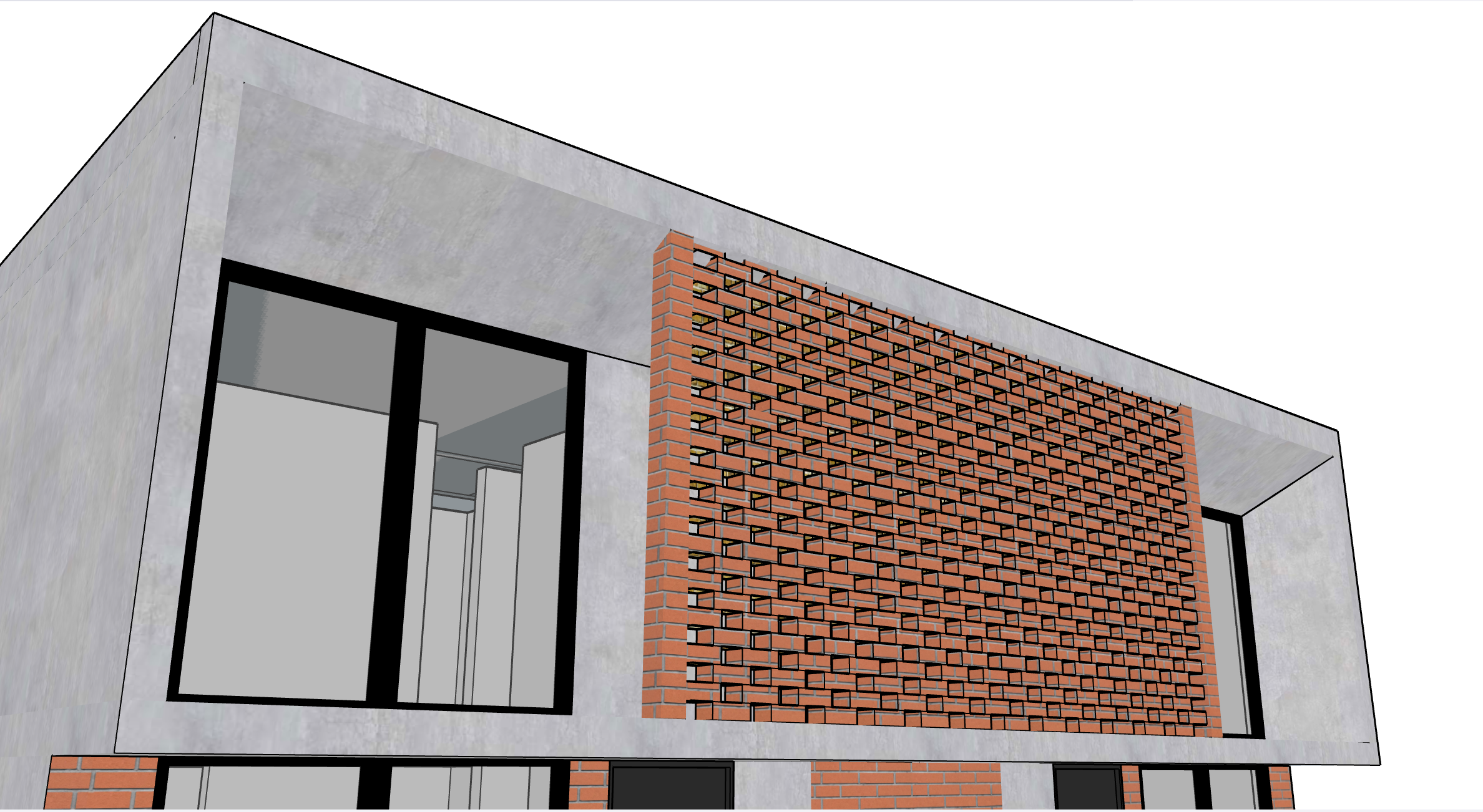keep the brick lattice and the entire structure exactly the same and add curtains please