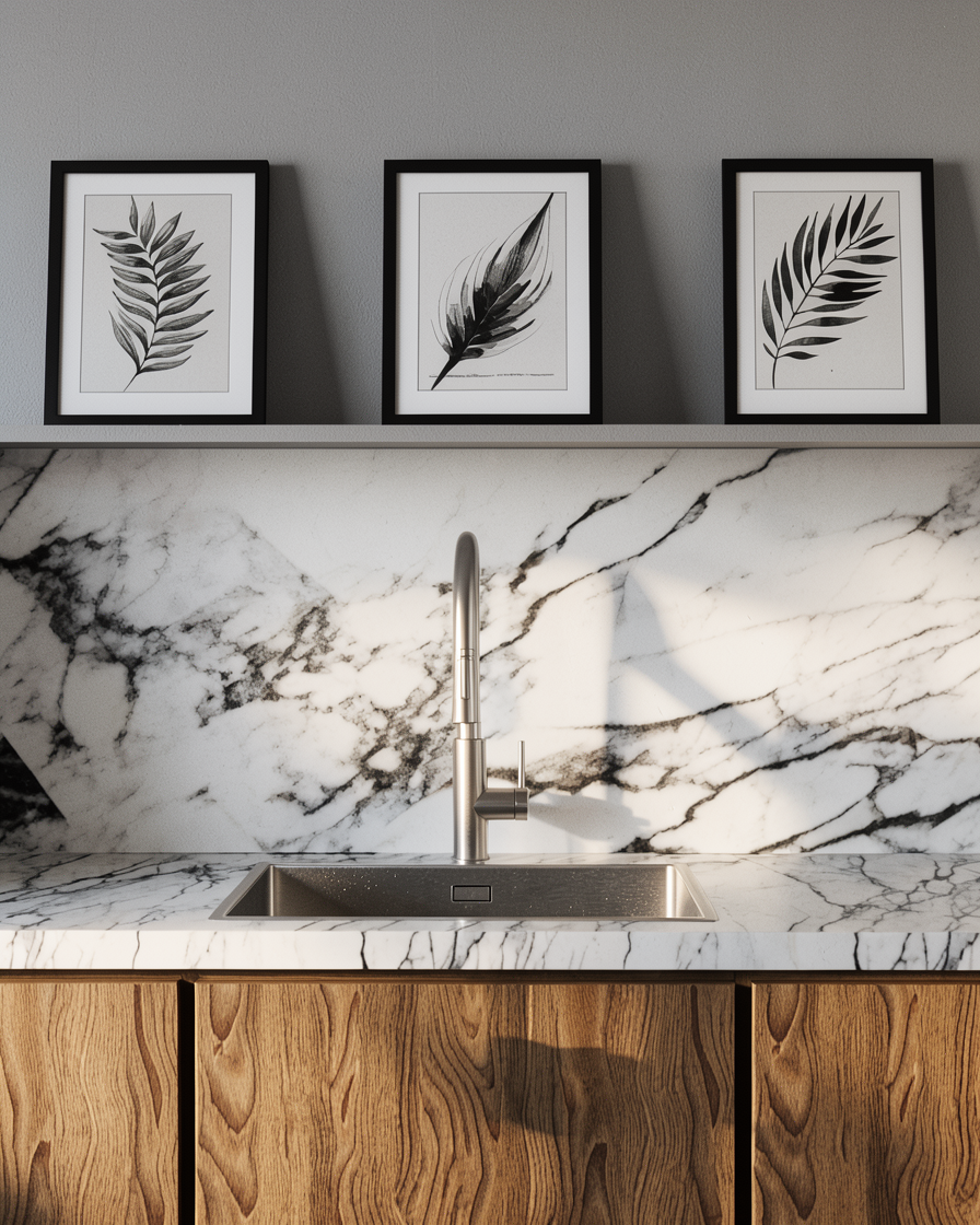 ultra realistic editorial render based strictly on the input image preserving exact composition camera angle proportions and all objects without any modification or reinterpretation enhance material realism across all surfaces all materials must feel physically accurate and tactile avoiding any plastic or overly perfect appearance matte finishes should remain matte with subtle roughness and micro imperfections wood surfaces must show natural grain depth and tonal variation avoiding uniform or artificial patterns stone or porcelain surfaces must have realistic texture slight surface irregularities and non glossy reflections painted walls must feel like real paint with soft light absorption and minimal texture variation metals such as stainless steel should display brushed finishes with soft anisotropic reflections never mirror like unless explicitly present in the original image glass and dark surfaces must have controlled subtle reflections avoiding excessive contrast or unrealistic sharpness lighting preserve the original lighting direction and mood enhance it to feel natural and cinematic with soft shadow transitions and realistic light falloff any warm or cool color cast must come only from lighting not from altering material colors atmosphere introduce very subtle atmospheric turbidity fine air grain to avoid a sterile digital look and enhance depth maintain overall clarity and sharpness where needed lens and focus apply a very subtle photographic feel with natural depth perception no artificial blur unless it already exists in the image general constraints no changes in layout geometry furniture or decoration no added or removed elements no stylistic reinterpretation no exaggeration of textures everything must remain faithful to the original image only improving realism material definition and editorial quality