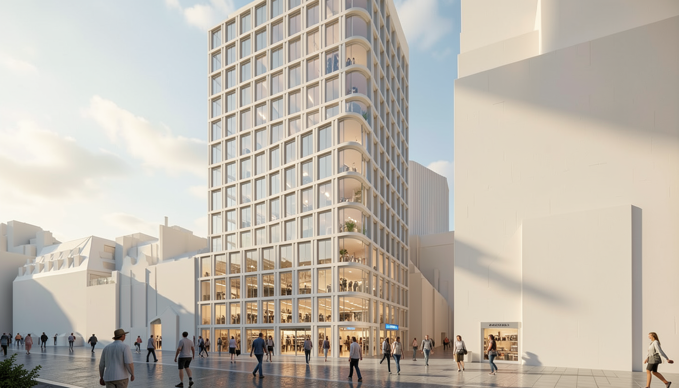 maintain the materials add cove light at both sides of the recessed ceiling the amara logo to be backlit soft natural lighting illuminating the space