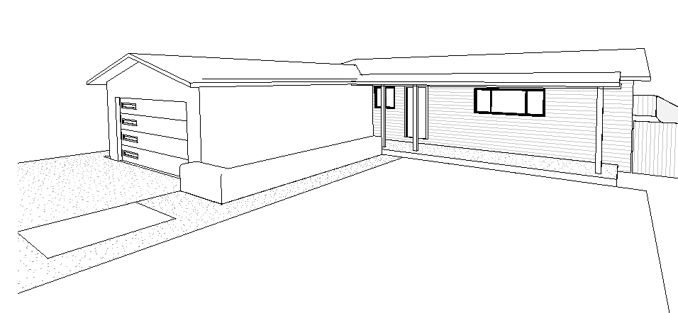 modernist exterior shot off white stucco cedar siding at front door wall dark bronze doors and windows japanese maple trees boxwood hedges colorful sky front lawn architecture